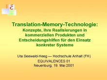 Translation-Memory-Technologie Konzepte ihre Realisierungen in kommerziellen Produkten und