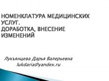 НОМЕНКЛАТУРА МЕДИЦИНСКИХ УСЛУГ ДОРАБОТКА ВНЕСЕНИЕ ИЗМЕНЕНИЙ Лукъянцева Дарья