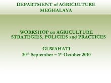 DEPARTMENT of AGRICULTURE MEGHALAYA WORKSHOP on AGRICULTURE STRATEGIES