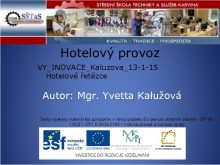 Hotelový provoz VY_INOVACE_Kaluzova_13 -1 -15 Hotelové řetězce Autor