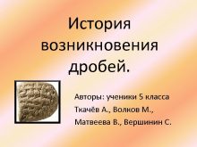 История возникновения дробей Авторы ученики 5 класса Ткачёв