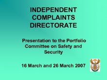 INDEPENDENT COMPLAINTS DIRECTORATE Presentation to the Portfolio Committee
