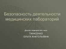 Безопасность деятельности медицинских лабораторий Доктор медицинских наук ТАРАСЕНКО