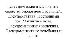Электрические и магнитные свойства биологических тканей Электростатика Постоянный