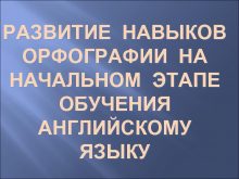 РАЗВИТИЕ НАВЫКОВ ОРФОГРАФИИ НА НАЧАЛЬНОМ ЭТАПЕ ОБУЧЕНИЯ АНГЛИЙСКОМУ
