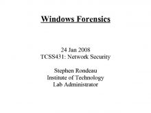 Windows Forensics 24 Jan 2008 TCSS 431 Network