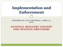 Implementation and Enforcement CONFERENCE CALL THURSDAY APRIL 21
