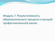 Модуль 7 Результативность образовательного процесса в высшей профессиональной