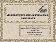 Литературно-математическая викторина Кузикова Анастасия 9 класс МБОУ СОШ