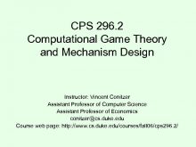 CPS 296 2 Computational Game Theory and Mechanism