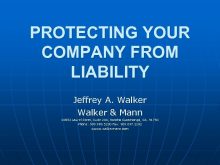 PROTECTING YOUR COMPANY FROM LIABILITY Jeffrey A Walker