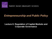 Entrepreneurship and Public Policy Lecture 6 Regulation of