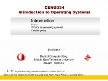 CENG 334 Introduction to Operating Systems Introduction Topics