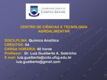 CENTRO DE CIÊNCIAS E TECNOLOGIA AGROALIMENTAR DISCILPLINA Química