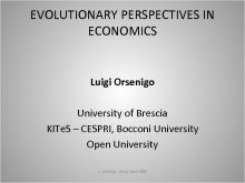 EVOLUTIONARY PERSPECTIVES IN ECONOMICS Luigi Orsenigo University of