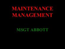 MAINTENANCE MANAGEMENT MSGT ABBOTT OVERVIEW To provide