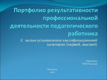 Портфолио результативности профессиональной деятельности педагогического работника С целью