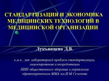 СТАНДАРТИЗАЦИЯ И ЭКОНОМИКА МЕДИЦИНСКИХ ТЕХНОЛОГИЙ В МЕДИЦИНСКОЙ ОРГАНИЗАЦИИ