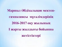 Маршал Әбдіхалықов мектепгимназиясы мұғалімдерінің 2016 -2017 оқу жылының