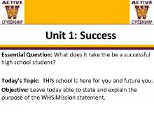 Unit 1 Success Essential Question What does it