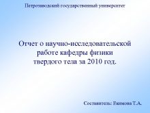 Петрозаводский государственный университет Отчет о научно-исследовательской работе кафедры