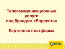 Телекоммуникационные услуги под брэндом Евросеть Карточная платформа