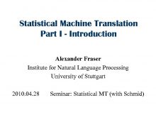 Statistical Machine Translation Part I — Introduction Alexander
