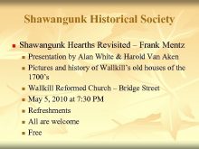 Shawangunk Historical Society n Shawangunk Hearths Revisited