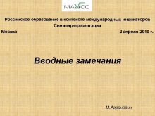 Российское образование в контексте международных индикаторов Семинар-презентация Москва