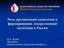 ВСЕРОССИЙСКОЕ ОБЩЕСТВО ГЕМОФИЛИИ Представитель России во Всемирной федерации