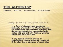 THE ALCHEMIST THEMES MOTIFS ALLUSIONS VOCABULARY Alchemy al-kuh-mee