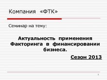 Компания ФТК Семинар на тему Актуальность применения Факторинга
