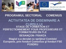 PROGRAMUL SECTORIAL COMENIUS ACTIVITATEA DE DISEMINARE A CURSULUI