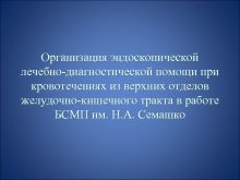Организация эндоскопической лечебно-диагностической помощи при кровотечениях из верхних
