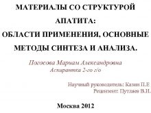 МАТЕРИАЛЫ СО СТРУКТУРОЙ АПАТИТА ОБЛАСТИ ПРИМЕНЕНИЯ ОСНОВНЫЕ МЕТОДЫ