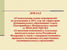 ДОКЛАД О выполнении плана мероприятий по реализации в