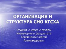 ОРГАНИЗАЦИЯ И СТРУКТУРА СНО КГСХА Студент 2 курса