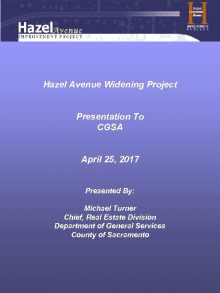 Hazel Avenue Widening Project Presentation To CGSA April