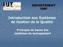 DEPARTEMENT GMP Introduction aux Systèmes de Gestion de