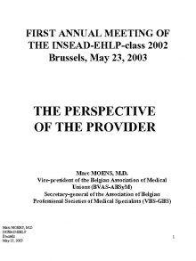 FIRST ANNUAL MEETING OF THE INSEAD-EHLP-class 2002 Brussels