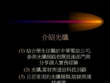 介紹光纖 1 結合學生任職於中華電信公司 參與光纖網路相關技術部門與 分享個人實務經驗 2 光纖 雷射與通信科技回顧