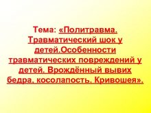 Тема Политравма Травматический шок у детей Особенности травматических