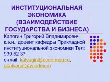 ИНСТИТУЦИОНАЛЬНАЯ ЭКОНОМИКА ВЗАИМОДЕЙСТВИЕ ГОСУДАРСТВА И БИЗНЕСА Калягин Григорий