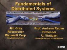 Fundamentals of Distributed Systems Jim Gray Researcher Microsoft