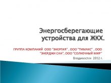 Энергосберегающие устройства для ЖКХ ГРУППА КОМПАНИЙ ООО ЭНЕРГИЯ