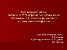Тема дипломной работы Разработка Web-портала для продвижения продукции