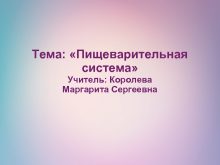 Тема Пищеварительная система Учитель Королева Маргарита Сергеевна