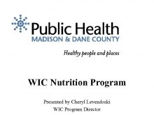 WIC Nutrition Program Presented by Cheryl Levendoski WIC