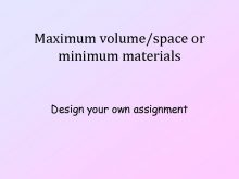 Maximum volume space or minimum materials Design your own