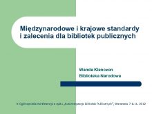 Międzynarodowe i krajowe standardy i zalecenia dla bibliotek